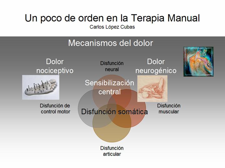 - Disfunción neural. En relación con problemas patomecánicos neurales, en los que la cobertura conjuntiva del Sistema Nervioso, o el propio amasijo de células neuronales contenidas, cambia su umbral de respuesta y participa en la clínica del paciente.